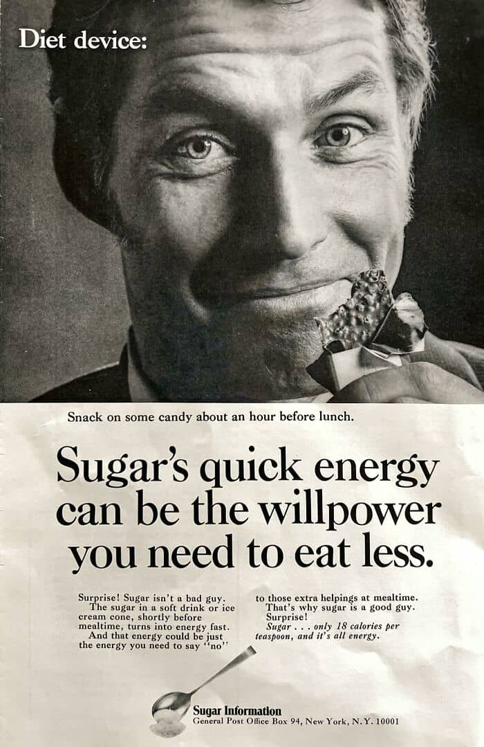 Today, we know that sugar isn’t good for us. But in the 1970s, people believed it could “cut appetite and increase your energy” and even help people lose weight. The truth is that foods rich in protein, fiber, and good fats are way healthier and make us feel satiated for far longer.
