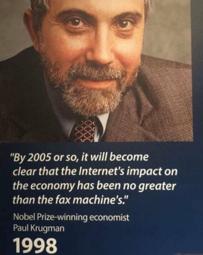 In 2000, people might’ve thought that the Internet was just a passing fad. In 1995, Robert Metcalfe, the inventor of Ethernet, claimed that “the Internet will soon go spectacularly supernova and in 1996 catastrophically collapse.” Even Bill Gates was wrong about some things, like the elimination of spam emails by 2006 or that passwords would become obsolete.