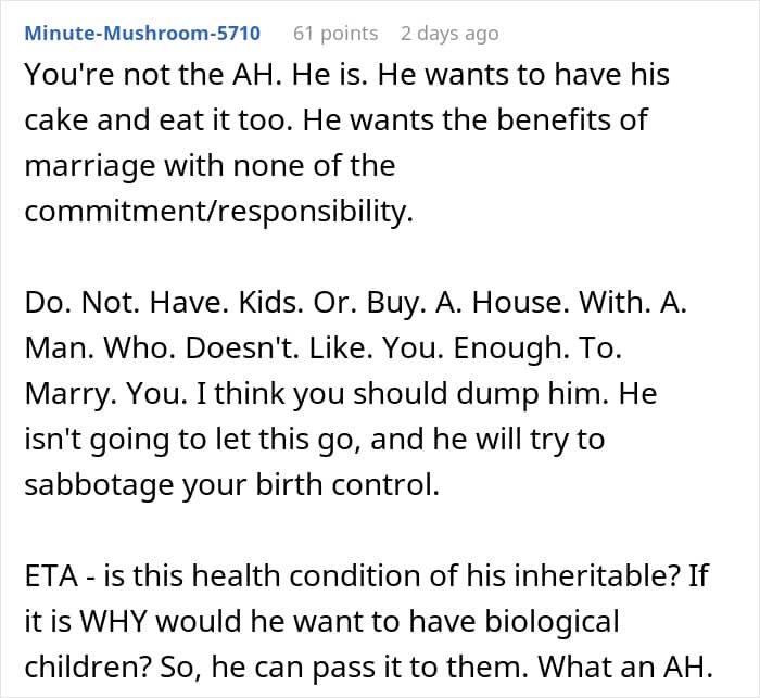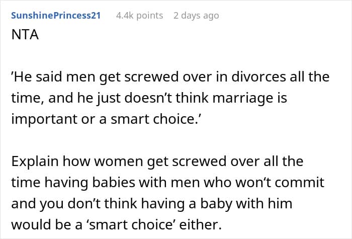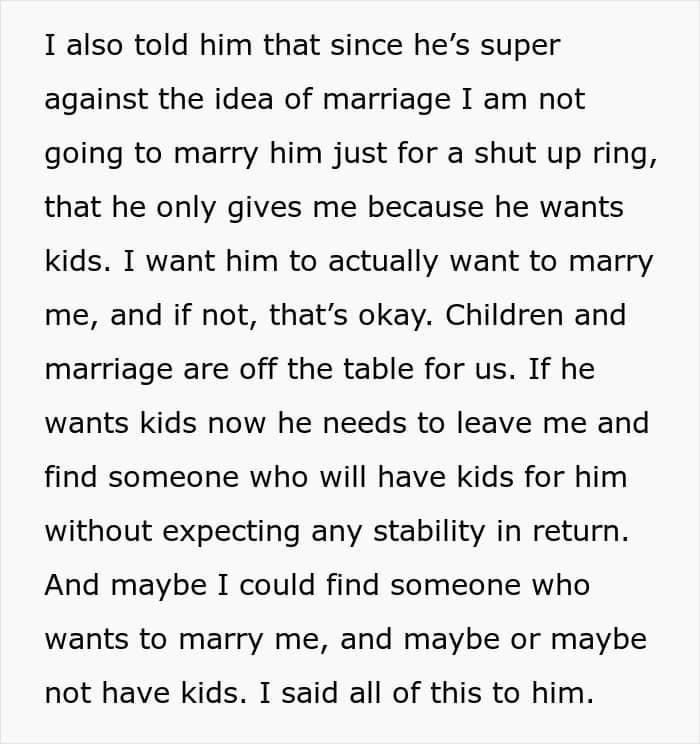 So when this woman’s boyfriend said he had no interest in marriage, she made it clear that they wouldn’t be having any children either