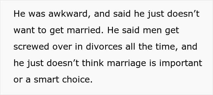 There are pros and cons to getting married, but one of the main reasons why couples choose to tie the knot is to have legal protections. The author of this post noted that her boyfriend was concerned about how men are often treated during divorces, but he didn’t seem worried about the fact that he would have no legal protection during a breakup.