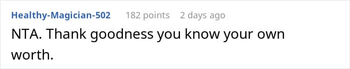 We would love to hear your thoughts on this situation in the comments below, pandas. Do you think this woman made the right choice by putting her foot down and sticking to her values? Feel free to weigh in. Then, you can find another We article discussing similar issues right here.