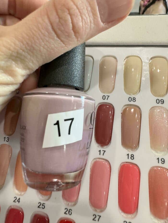 I asked for color #17 in the book (background) while at the nail salon today. When she started painting my nails with the #17 in the bottle, I was surprised and asked if she accidentally grabbed the wrong one – since it was a completely different color.