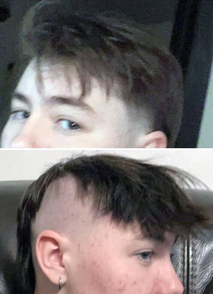 #24 Asked For A Fade And Got This. One Side Is Kind Of Faded, The Other Isn’t