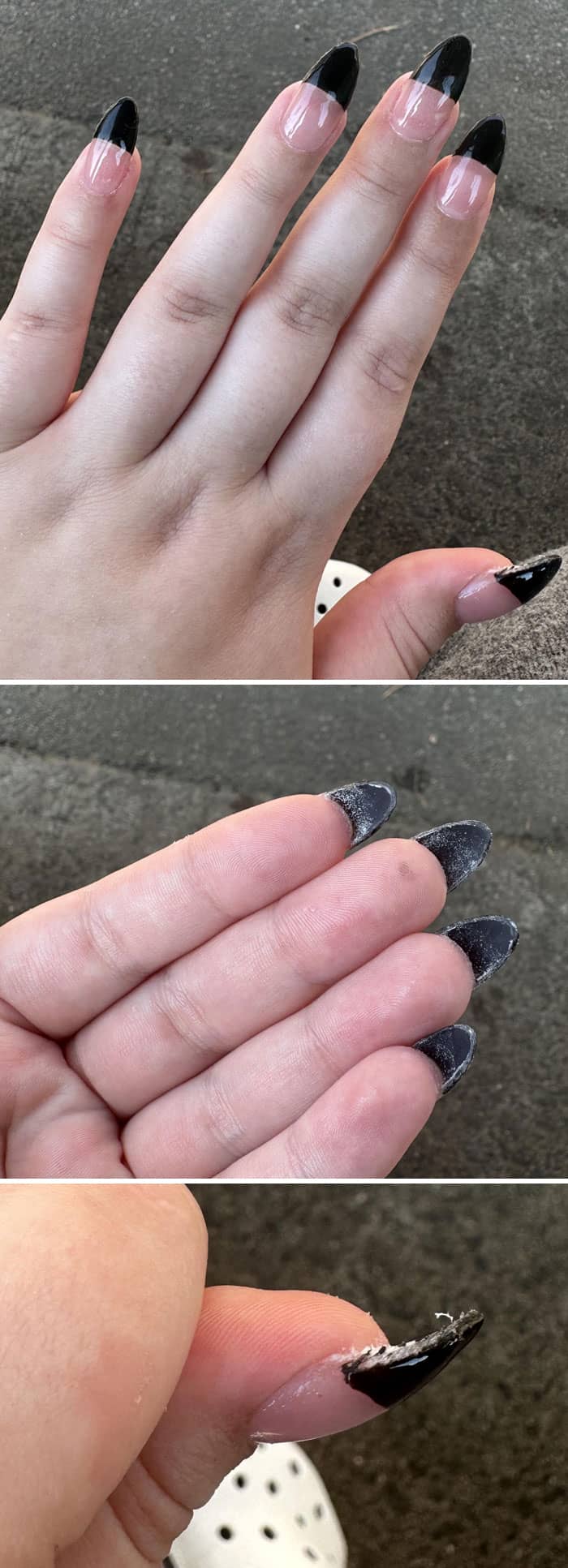 #49 What I Asked For vs. What I Got. All Nails Were Of Different Shapes And Sizes. No Fingers On Both Hands Matched