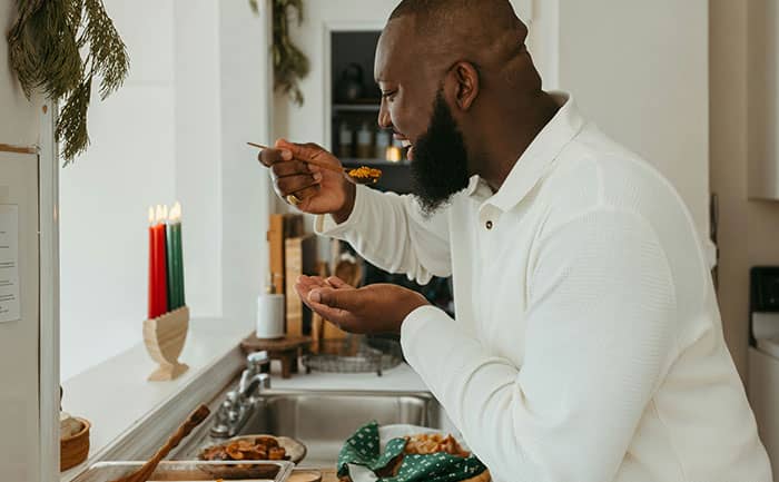 After living together for four years, two years into our marriage I became so ill that I was laid up for weeks. I feared that we would both starve and be living in filth and poverty from eating out until he surprised me with a, better than my own, home cooked meal. It was delicious! Even the house was cleaner than ever.