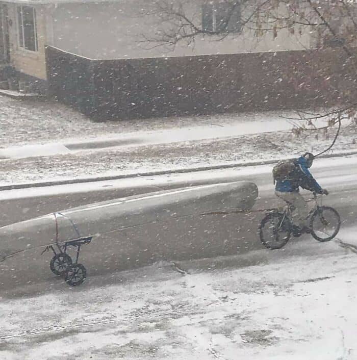 #8 Pulling A Canoe With A Bike In A Snowstorm In Mid April. It Doesn’t Get Any More Canadian Than This