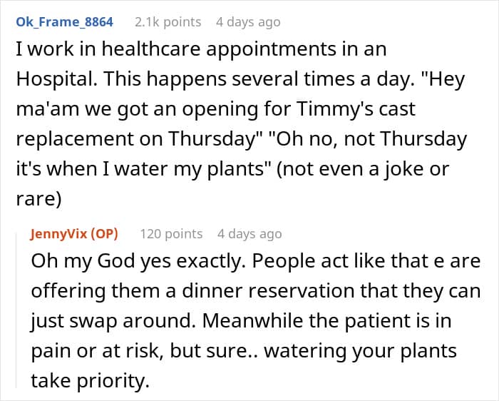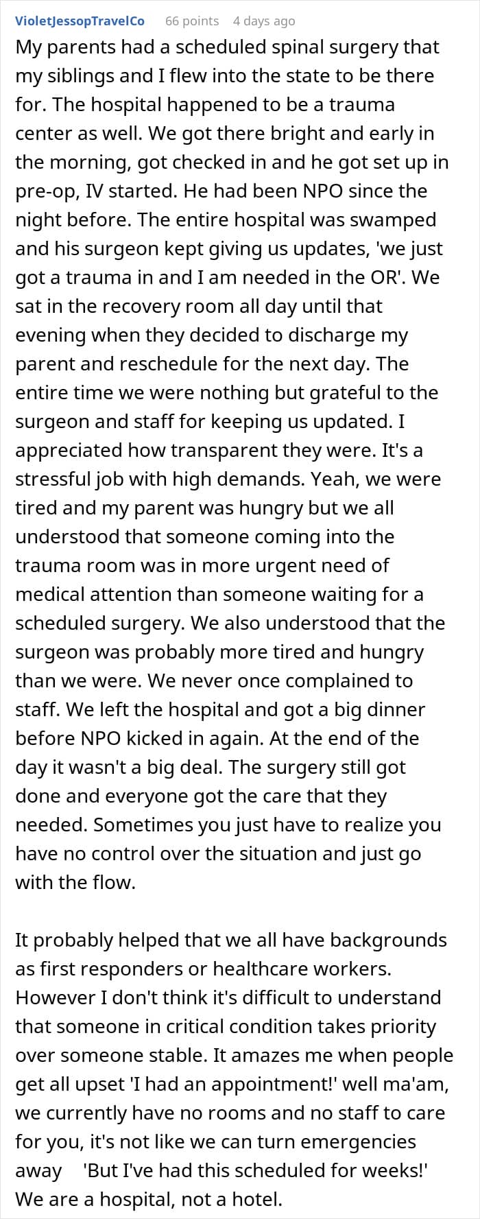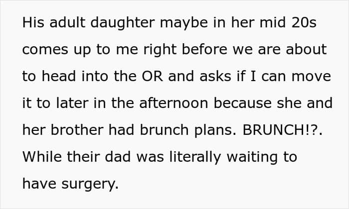 She explained that surgeries aren’t casually rescheduled, but the daughter insisted, suggesting the doctor bump another patient instead