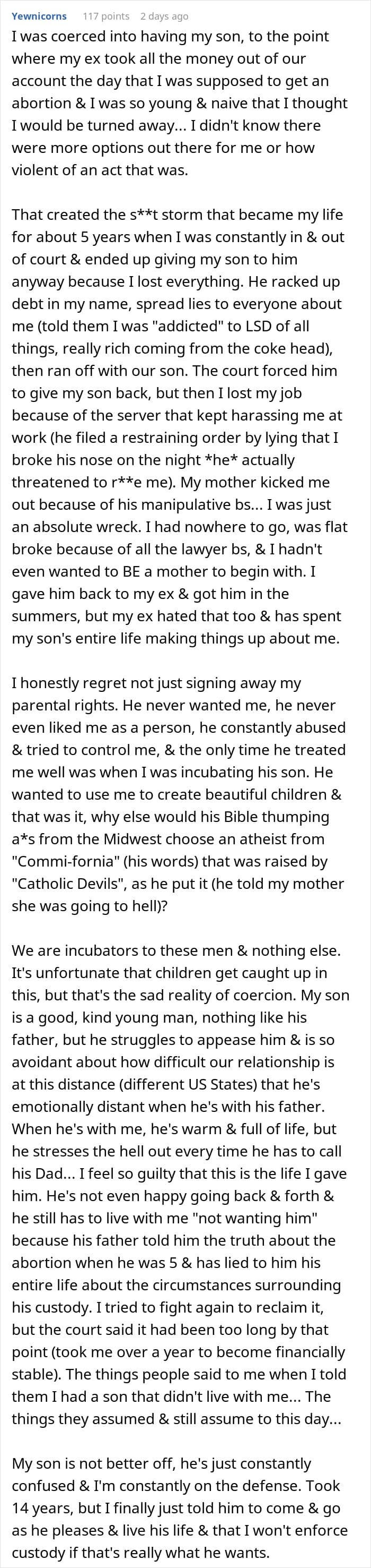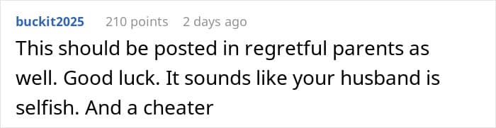 The OP shared that she, too, felt immense pressure to live a certain way, which eventually led to her living a life she hated. “I was pressured by society, my husband, and my own family to have this baby and how I will love this life after I have this baby and just to do it and give it time,” she said, adding that it just didn’t work out that way. After reading her story, netizens took to the comments section to share their thoughts.