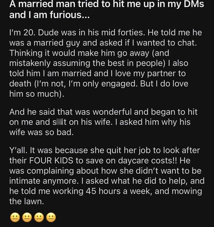 #8 Wrote About How I Was Stunned A Married Man Could Have His Wife Do Everything And Wanted To Cheat. Dude Felt He Needed To Give Me Dating Advice