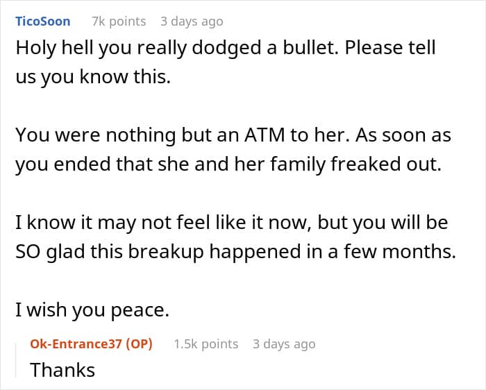 He hesitantly decided to break the engagement off and end the relationship altogether. However, his now-ex-fiancée began manipulating him. You will find the entire text of this lengthy story below.