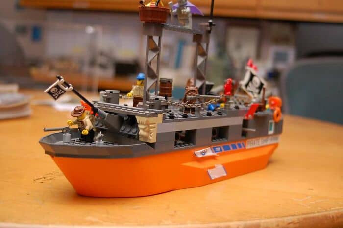 So I went in to pee and found a Lego pirate ship on the back of the toilet. After I was done, I asked her if it was a roommates and she said (proudly, mind you), “No, it’s mine!”