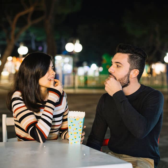 My now husband and I went to see a band on our first date. When he ushered me to the back of the club to talk to me the rest of the night instead of watching the band…I took that as a green flag.