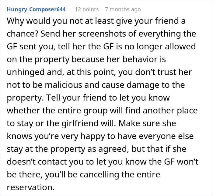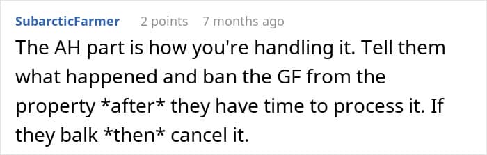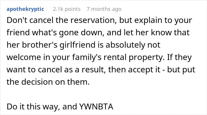 Now she wants to cancel it after her friend’s brother’s girlfriend showed her true colors