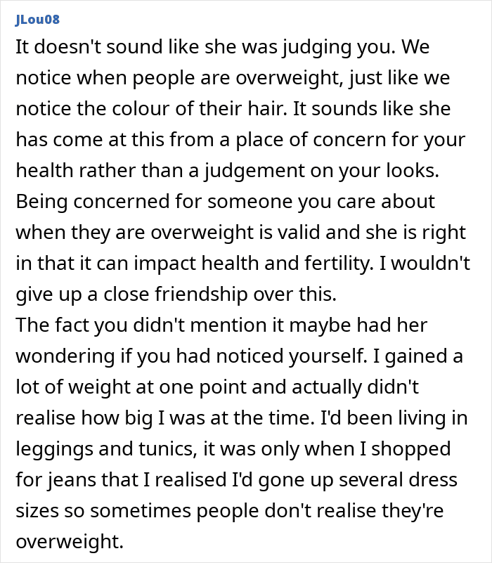 The woman on the receiving end of these comments didn’t take them well, and as a result, she began to rethink their friendship.