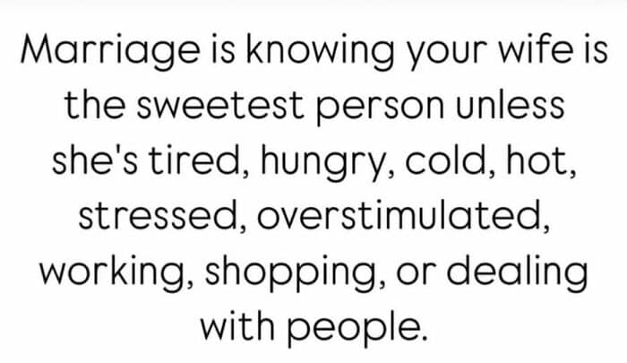 Still, married life comes with some ups and downs. Sometimes you love your spouse more than anything in the world. Other times, they might annoy you so much you start plotting how to get rid of them in their sleep. One online group collects funny observations and jokes about marriage, and here we present to you those we hope you will find most relatable!