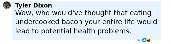 It went on to say the patient’s “exposure history was unremarkable except for a habit of eating undercooked bacon, by which he would have developed neurocysticercosis via autoinfection,” the publication noted.
