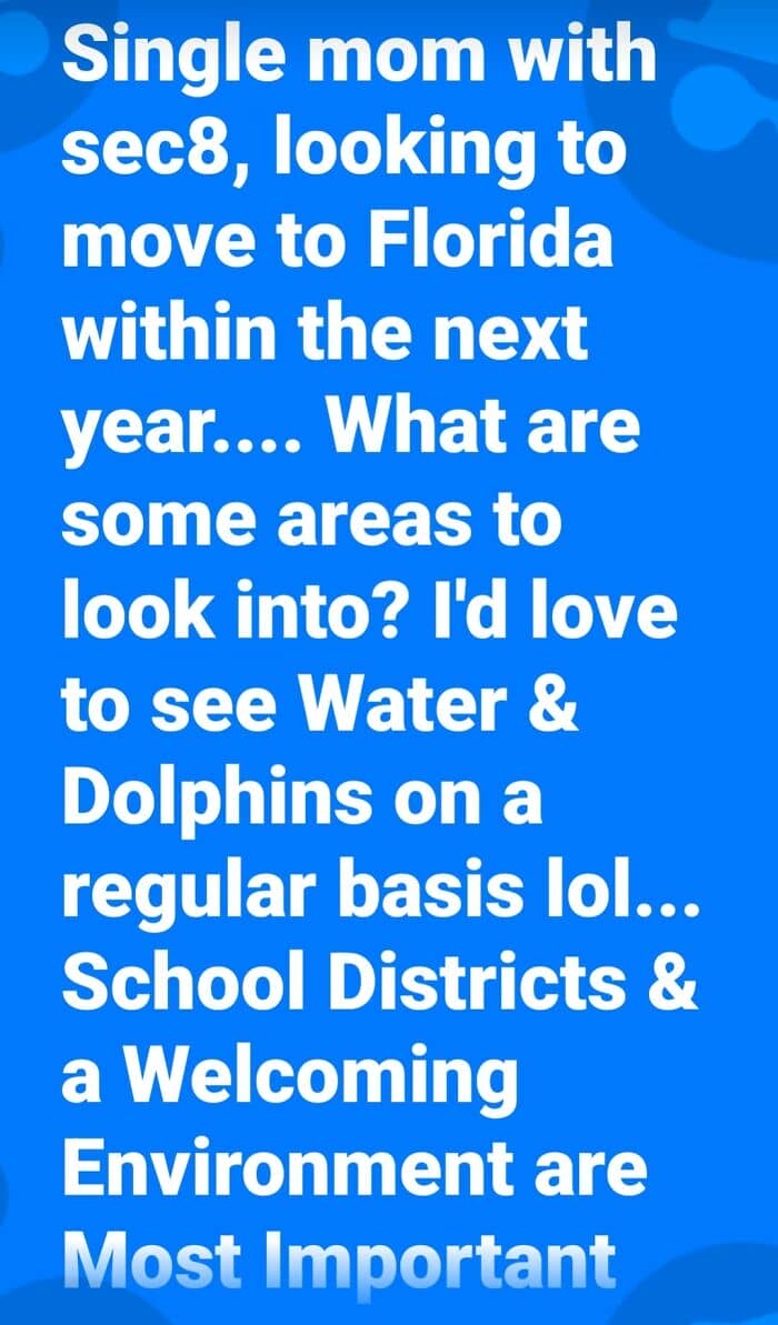Single mom, section 8, moving to Florida, wanting ocean views? Come on now…I live close to the beach and it is expensive!