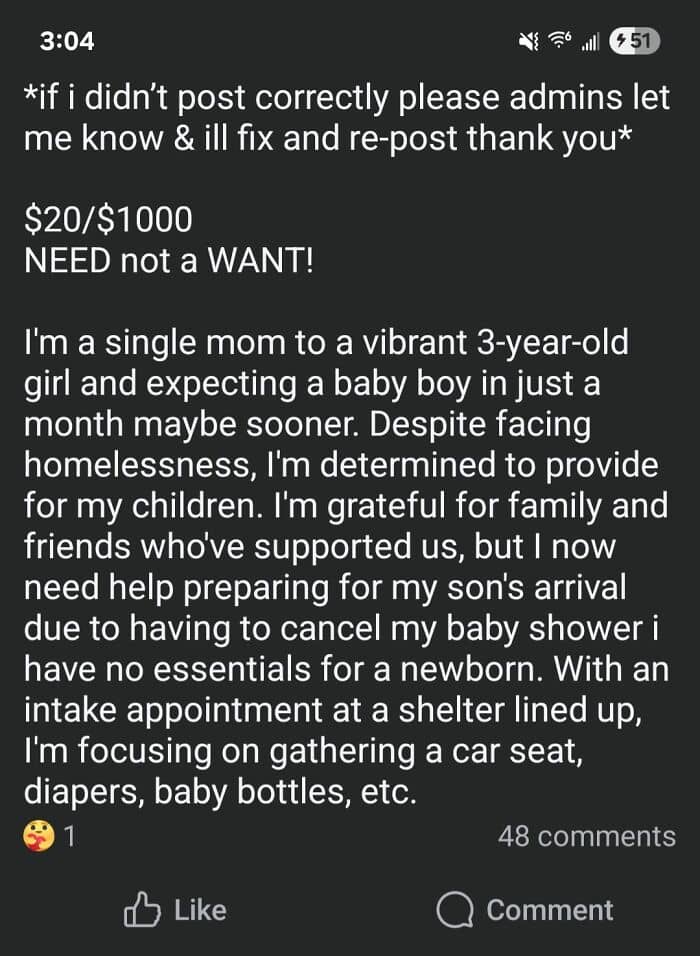 Below, we’ve gathered some of the most entitled posts that highlight moments where single moms made bold, and at times outrageous, demands and ended up getting called out for it. The Facebook group ‘Single Mom Is Not a Coupon Code’ has become a space where people share jaw-dropping posts, from requests for free childcare to expectations of luxury gifts. These posts have sparked plenty of debate, disbelief, and a fair share of secondhand embarrassment. Keep reading to see just how far some took their sense of entitlement.