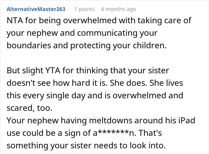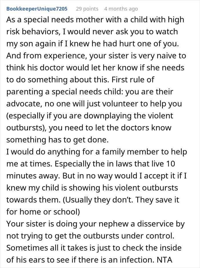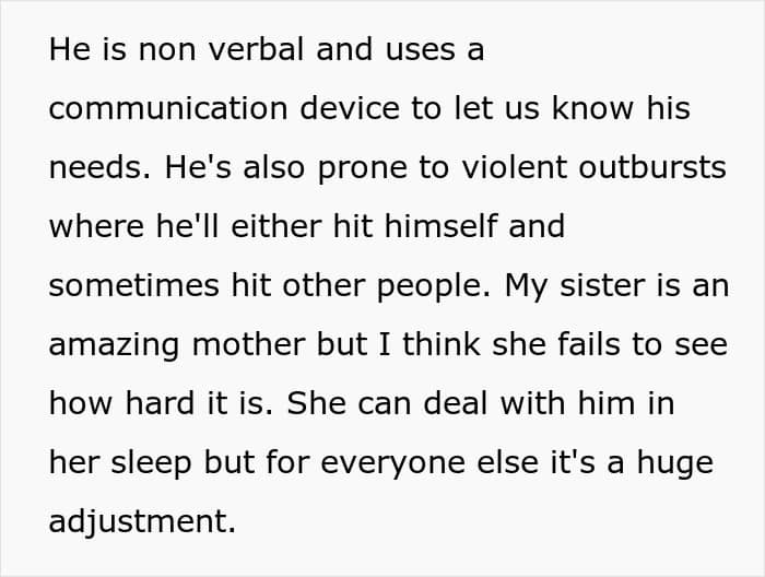 Reddit user Available-Hat6629 shared a tense story about her sister’s autistic son, whose violent outbursts recently escalated during a visit to her home.