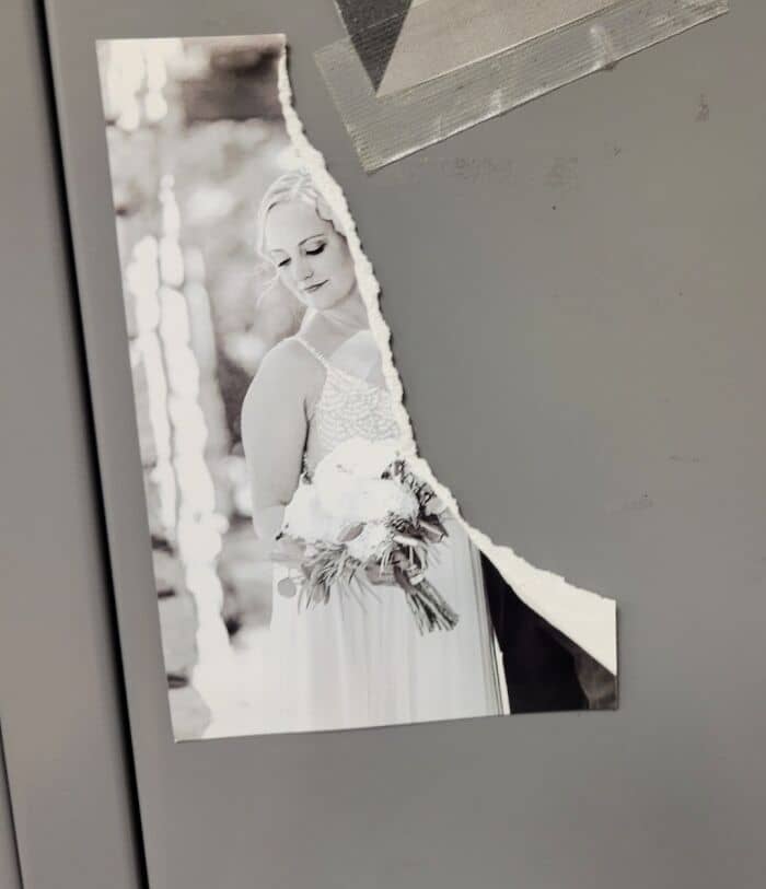 Someone at work (nursing) perfectly ripped my husband out of the wedding photo on my locker. There’s no way this was accidental.