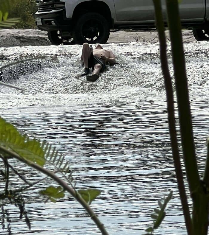 He washed his truck in the middle of the creek, let his 2 50+lb dogs harass my family, drove his truck under the influence, left coors light bottles around, then proceeded to say “I have permission from the owner to be here. Do you?” This waterway cannot have private ownership according to state law buddy.