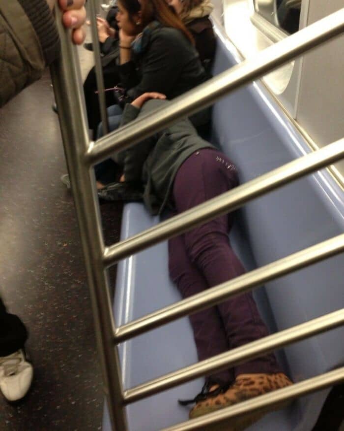 She wouldn’t wake up. Not even for her friend trying to wake her up. I suppose I could have grabbed her feet and moved them. But that wouldn’t have been very mature either. It’s called common decency. You don’t take up a whole bench on the subway just because you’re tired. It isn’t your bed.