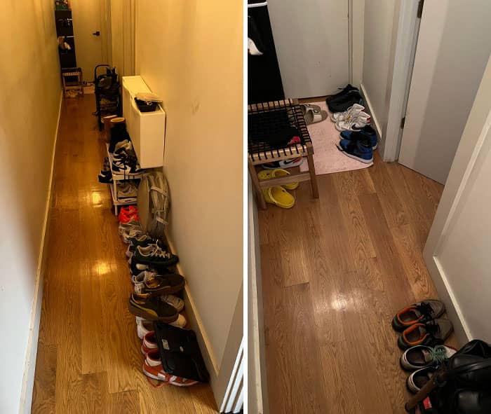 I want to tell them to find space in their room or get rid of shoes. My bedroom door opens right up to their black dresser, and their shoes are on both sides of my door now. Am I making a mountain out of a molehill, or should they be more considerate of common space?