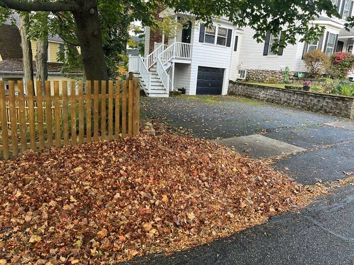 #76 How My Neighbor’s Landscapers Cleared The Leaves From Her Property (Right). My Property (Left) Starts At The Fence Line