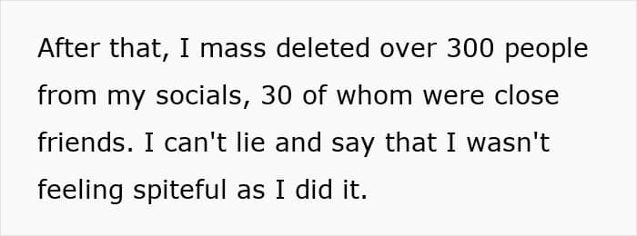 The poster soon realized that she’d never do something like this to her friends. She had always been there for them and made an effort to stay in touch, whereas they never did the same for her. This mass-ghosting really showed everyone’s true colors, which is why she decided to delete all of them from her socials.