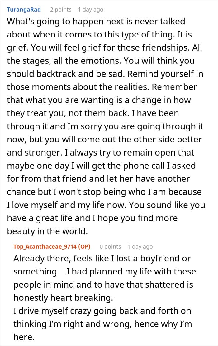 This woman went with the latter, after the last straw, which was her friends once again excluding her from their trip. While it might have been hard, netizens comforted her, saying that it was the right thing to do.