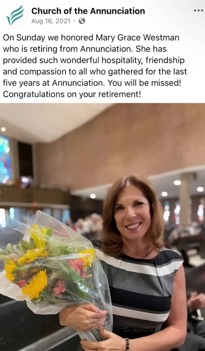 Mary Grace Westman, the suspect’s mother, had worked as a secretary at the Annunciation school for five years before her 2021 retirement.