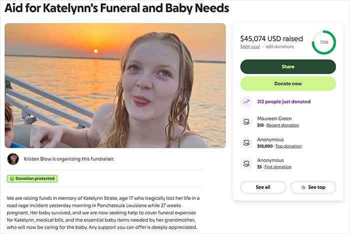 17-year-old Katelynn was preparing to welcome a newborn baby when the tragedy took place on August 25.