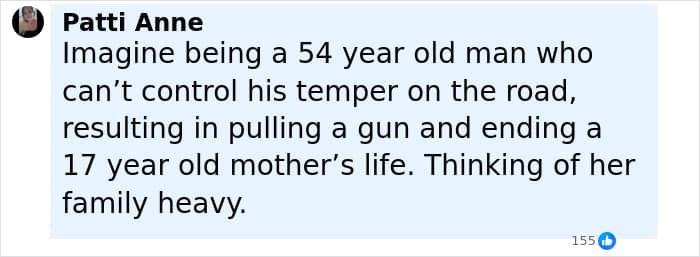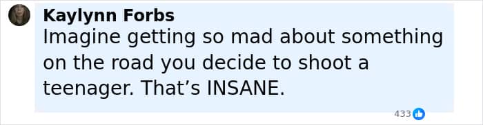 “Imagine getting so mad about something on the road you decide to shoot a teenager. That’s INSANE,” one commented online.