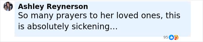 “All she did was leave her home,” one wrote online, while another said, “OMG this is so terrible, Praying for her family.”