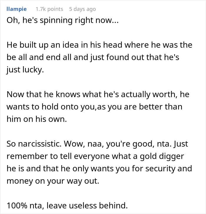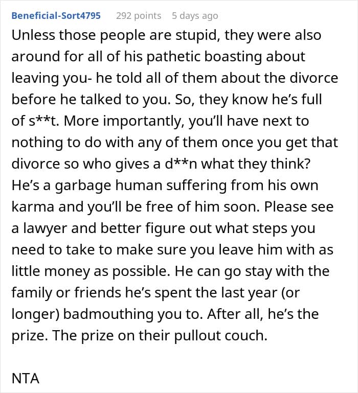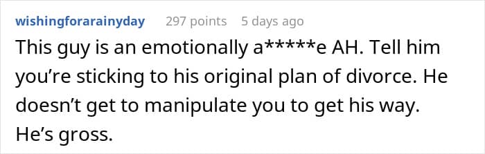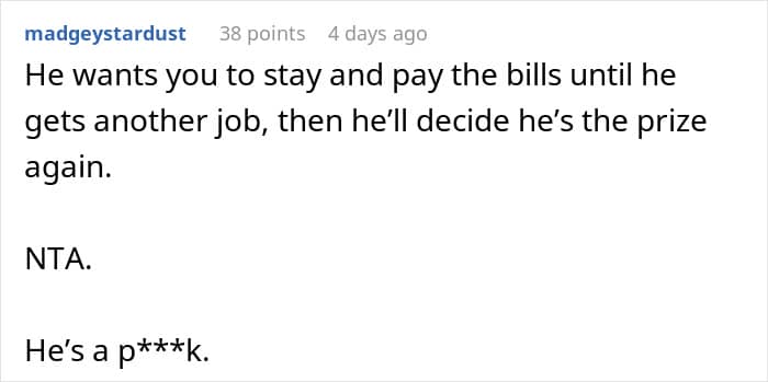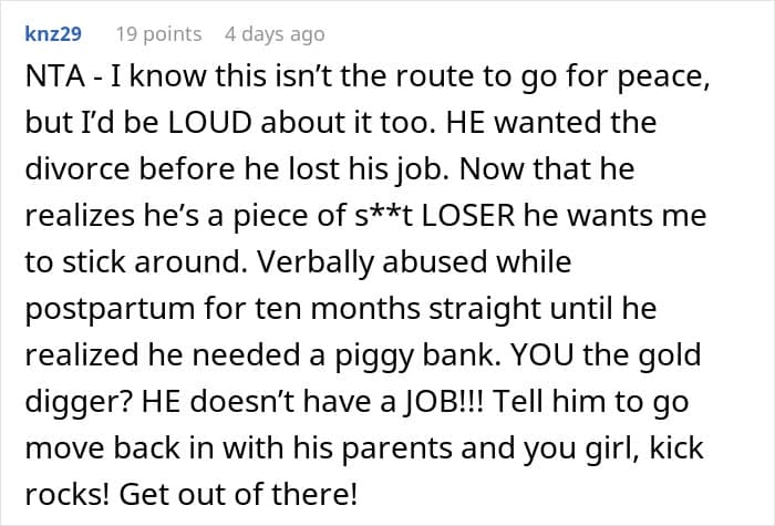 This husband changed his mind about divorce, too, mostly because of selfish reasons and losing his job. But his wife refused to let him backtrack and went through with it herself, leaving him dumbstruck.