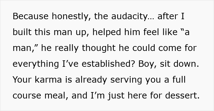 However, she gave us an update that she has already filed the case and is waiting for a court date. Meanwhile, the cherry on top is that her ex’s sister contacted her and spilled the tea that the guy is in a violent relationship. Apparently, he fought with his girlfriend because of OP and she got handsy with him, so his whole family hates her, while the poster is just enjoying destroying his life!