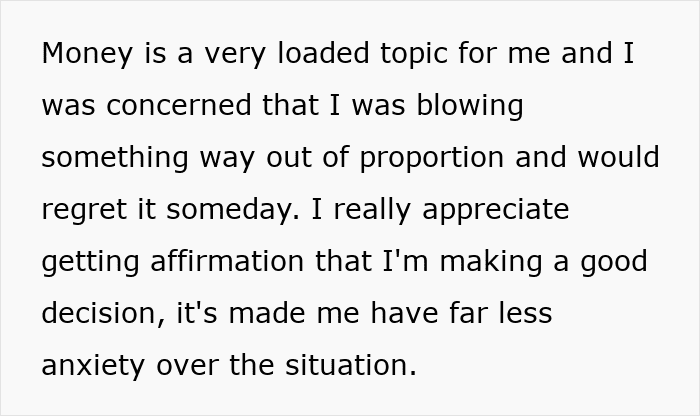 The author of the AITAH post mentioned that she could easily pay off her remaining debt. However, she chooses to use the extra savings as an ‘emergency cushion’ that could last her a few months. This makes her feel financially safe. And it’s sound advice.