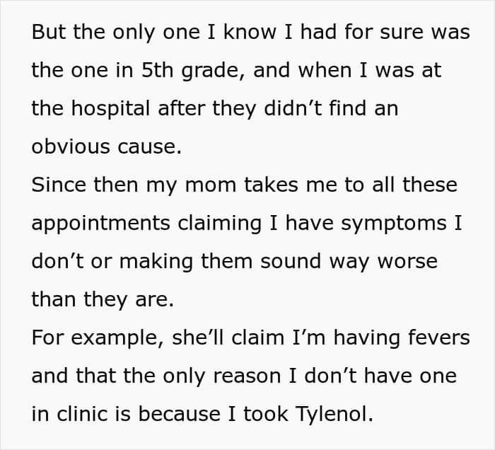 That’s the reality for one 15-year-old who has been diagnosed with several health conditions since she was 10. All because her mother lied to doctors about her symptoms. The teen recently anonymously reached out to medical professionals online, begging for help.