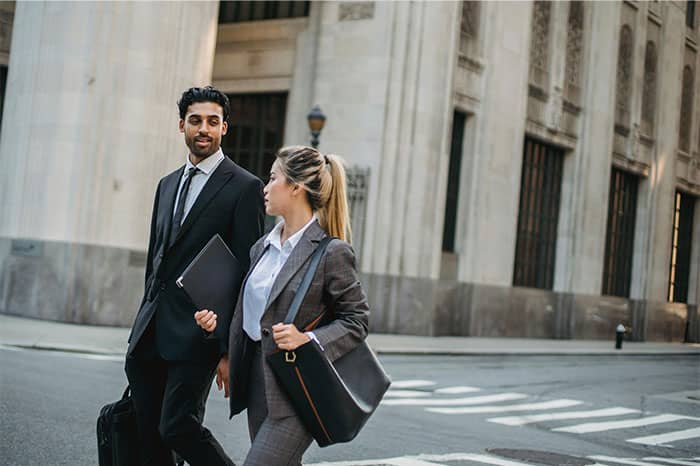 Walk like you mean business. Head straight, shoulders back and confident pace. Never stop for anyone you don’t know and stay aware of your surroundings.