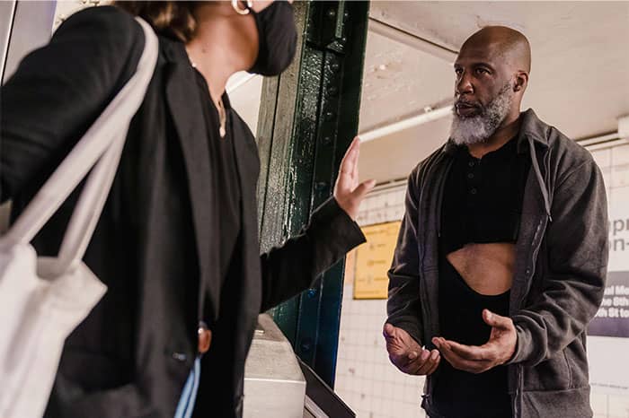 If someone approaches you asking for money, gas, whatever, act annoyed and be short with them: “I’m working”