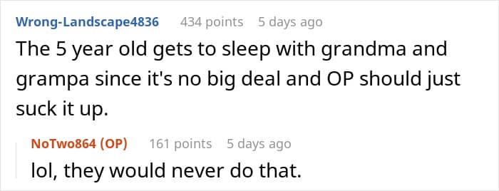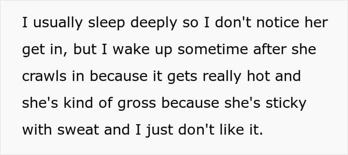 Instead, she scaled the bunk bed like a sticky little spider, ending up in the OP’s bed and robbing her of sleep. And for the OP, who was used to uninterrupted snoozes, this was a nightmare. The heat, the discomfort, and the general “ick” factor of waking up sweaty beside a 5-year-old left her at her wits’ end.