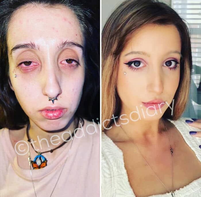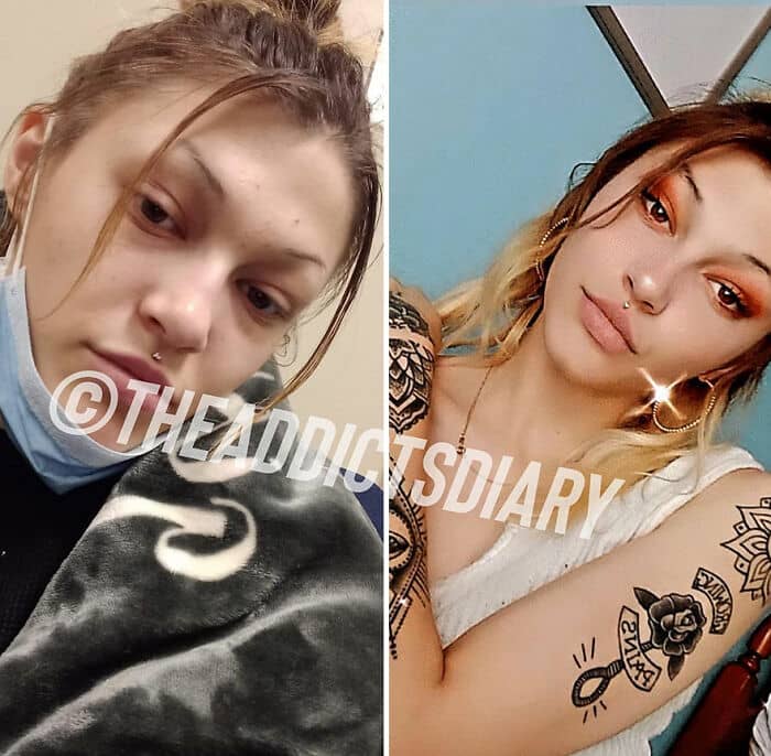 “My name is Hailey. I am 9 months and 6 days sober from everything. The picture on the left is me at the worst part of my addiction. On the right is me today. Just wanted to spread a little hope.”