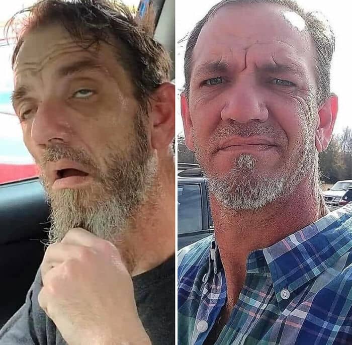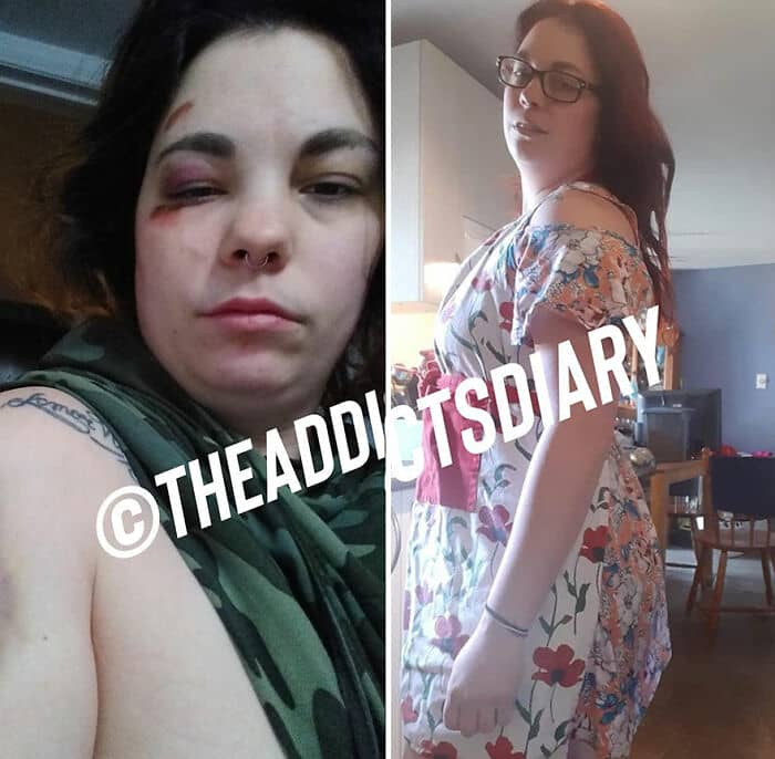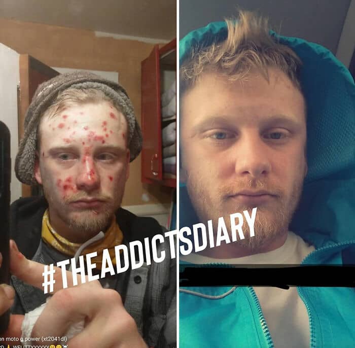 “I don’t want to post this, but maybe it can help someone. This is where my addicition took me, and the second picture is where I am today. I suck at life, it’s hard for me to live life on life’s terms. But a day I don’t stick a needle in my arm is a day worth living. I’m grateful and blessed to still breathe the air God gave me. Today I am healthy. Today I have amazing people by my side to support me. I have relationships with friends I never thought I would have. So to anyone who is struggling with active addiction, there is a better life to live. You just have to want it. I’m grateful beyond words today. Thank you to everyone who wouldn’t give up on me. Every day I will push to be a better person than I was yesterday. And I owe it to God. Much love.”