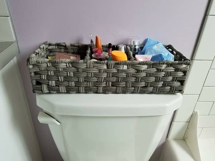 Review: “I love this for the bathroom. It holds my wipes and whatever I need to put in it. I use the shelf on top for my phone and I put my glasses and rings while taking a shower. Love it” – Donna Meigel