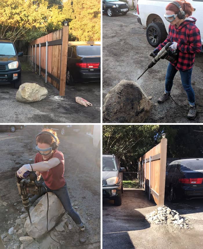 #1 My Jerk Neighbors Decided To Be Complete Drunken Fecalwads By Rolling A Giant Sandstone Boulder In Front Of My Car, But Forgot That I Am A Tiny Geologist Who Has Access To A Very Loud Auto-Chipper At 7:30 Am