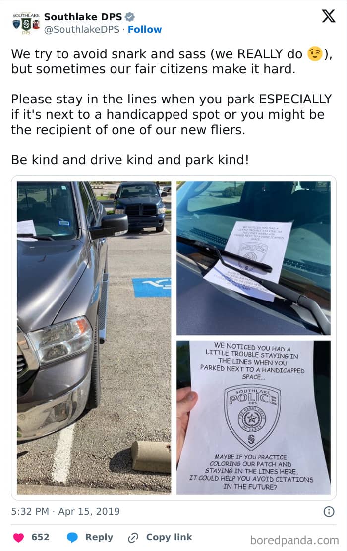 #21 Go Go Gadget Passive Aggressive Note. Left This Note On A Car. Don’t Park In My Spot