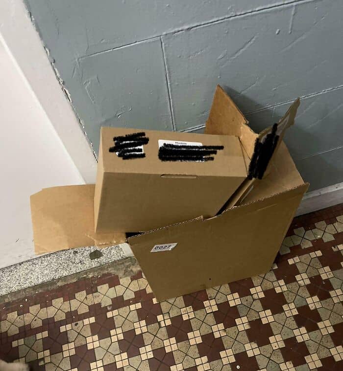 So my neighbor who lives directly next to me is moving out. Last October, I had just moved in and ordered a new wifi setup. Yesterday, I came home from work to find my complete package in the plastic, but in the torn open box covered in dust. Now this is just so funny to me, but now I feel so unnerved of who I’ve been living next to. My internet had long been replaced and cost me nothing to rectify. Just so, so strange.