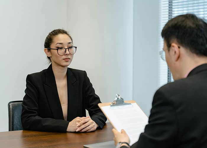 Our company was hiring a receptionist and I was conducting the job interview with a colleague.
