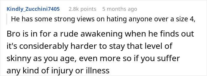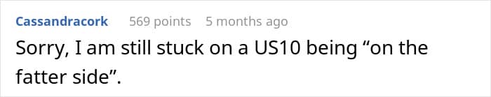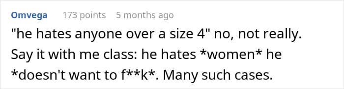 And the fiancé? A true gem. He muttered that “anything over a size 4 is disgusting.” Ah, the sweet sound of toxic masculinity in its natural habitat.