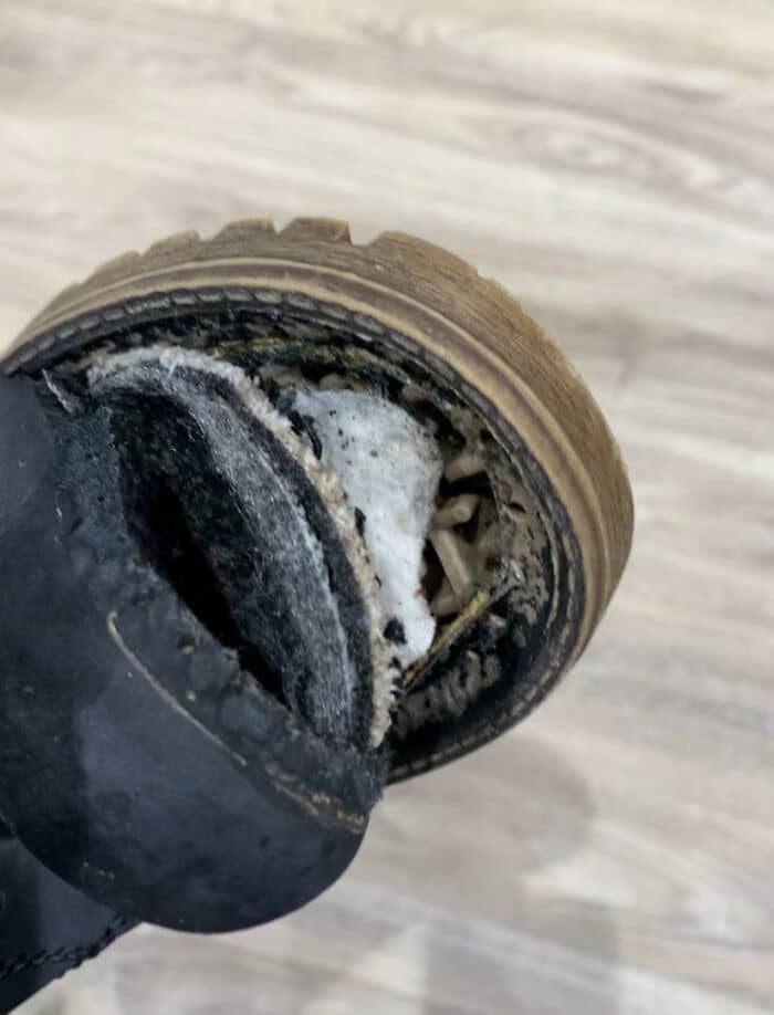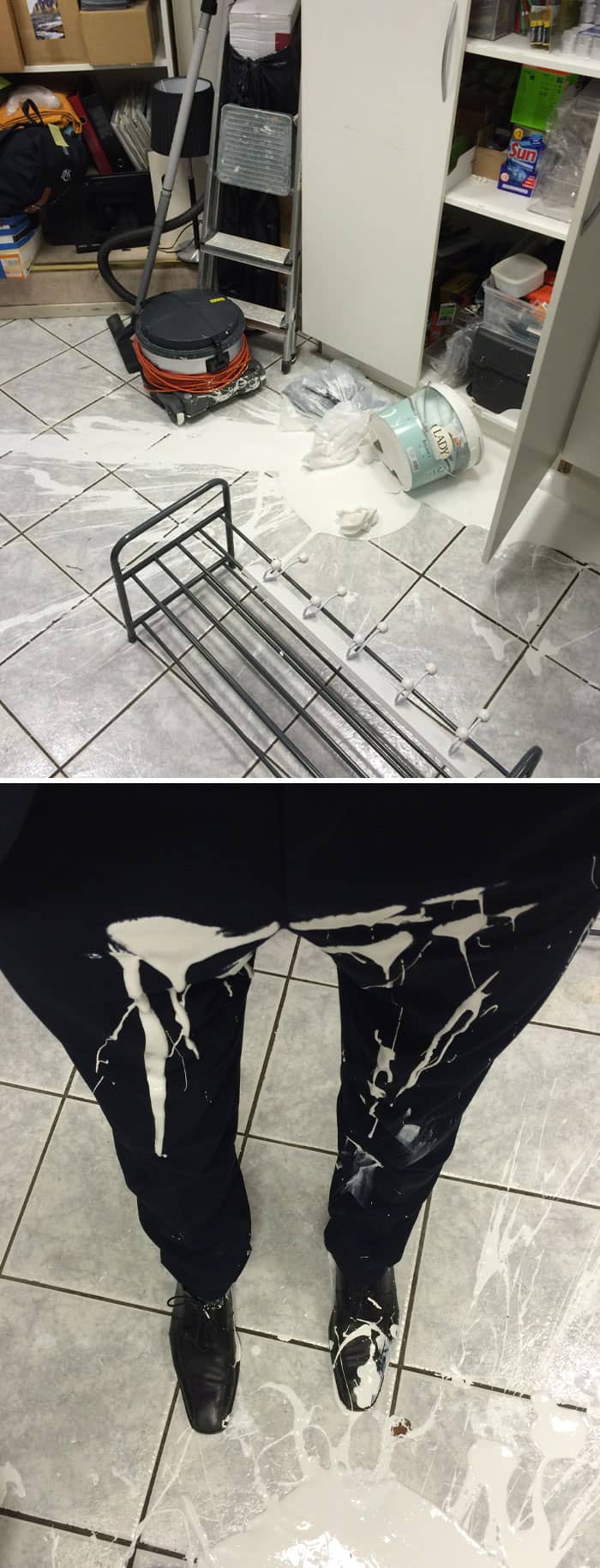 That’s a 10 liter can of white oil based paint, my suit trousers and my leather shoes.